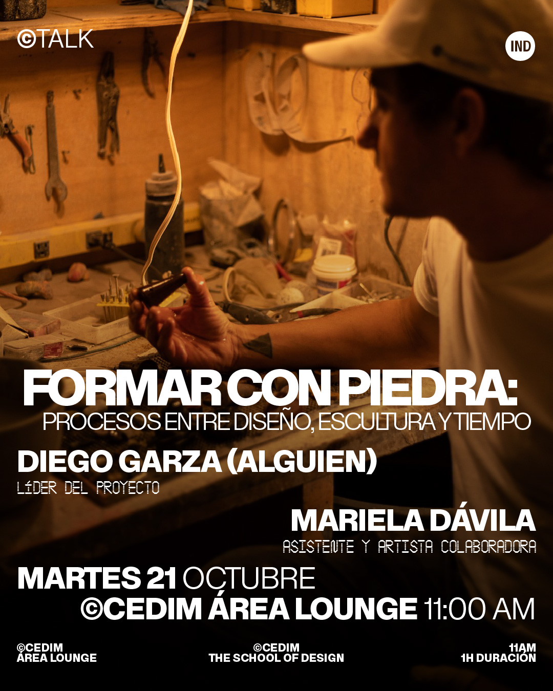 A través de procesos que van del modelado digital al tallado manual, conoceremos cómo las piezas, herramientas y referencias construyen un diálogo entre lo ancestral y lo contemporáneo, bajo el concepto de “arqueología especulativa”.